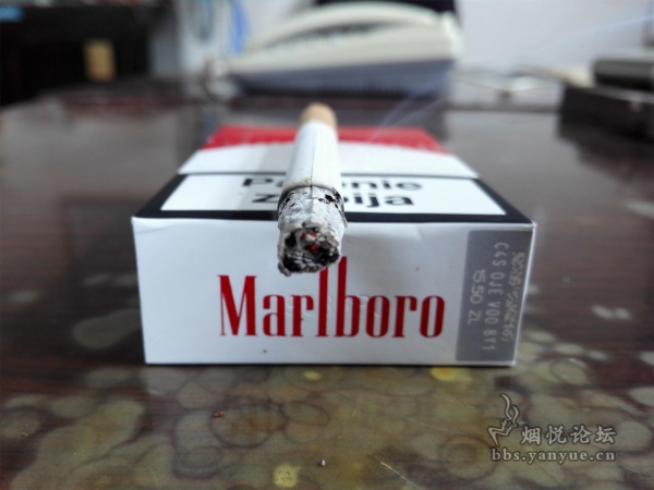 点燃一根。一个吞吐回合结束后,首先还是会立即感受到,这是在抽过滤嘴是紧实类型的万宝路。唇齿间留存的味道,是鲜润的特点,与上文中的匈牙利硬白金一样的状态,只是浓郁度要高一些。烟丝整体燃烧的速度适中,烟雾均匀而自然地腾起飘散。烟气整体的劲道,也非像台免硬红一样异常浓烈。吸入一口,烟雾翻转而流淌于鼻腔之中。闭紧双唇,一任烟雾从鼻腔中穿梭。鼻腔内的灼热感有之,但并非异常刺激。满吸一口,烟雾滑过喉咙而涌入肺中。烟雾过喉时,呛痒感和刺激感也不是十分强烈,舌端感受到的依然是鲜润且又有些微苦的味道。入肺后烟气整体的冲击力,在完税红万系列中,属于中高状态,比其它版本来得要有力量些。但相比于一些免税版本硬红万,却又显得低弱了一些。深吸入一口凉气,以使烟雾尽可能深入肺内。约过3秒钟,口鼻并张,一举喷吐出缕缕烟雾。呼吸从鼻孔端鱼贯而出的烟雾,一些红万系列特有的甘苦气味,还是十分明显地嗅闻到了。再次回味唇齿舌端,鲜润与甘苦味道并存。尾端的烟气整体质量,相比之前数口,没有显得下降多少,只是有些异常灼热。就此掐灭,结束对这款完税版波兰硬红万的品鉴之旅。