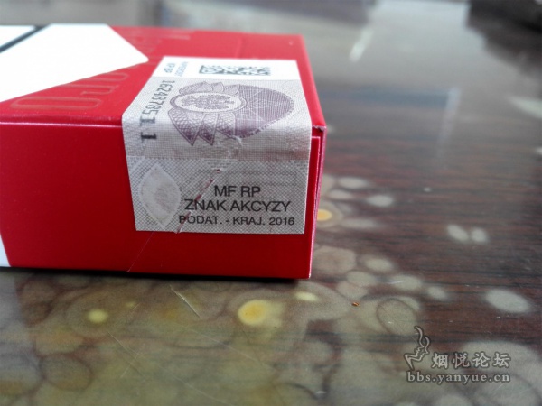 烟盒背面和左侧面,贴制有波兰完税标签。