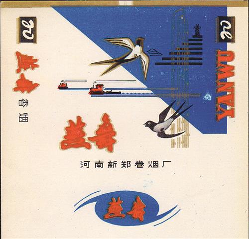 ⑤上世纪80年代河南新郑卷烟厂出品的“燕舞”烟标(局部)。