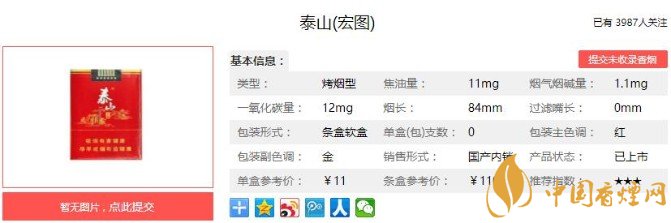 QQ号: x 泰山(宏图)可以说是山东中烟比较尽心之作,从包装到口感无疑都精心研发,让烟民也重拾信心。采用雄伟峻拔、气势磅礴的泰山风光为商标图案,经典形象全新演绎。大气的包装,是实在的口感为消费者提供高品位卷烟首选。