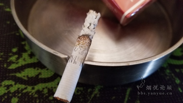 继续以正常速度吸食、享受。加长的那段烟支,正好调和了烟气的流速,烟气的劣化程度比69mm的无嘴要慢很多。整体的风味基本保持。后1/3段,有稍许的焦油刺辣感带出。拉近看,最后焦油的析出已经比较明显了。