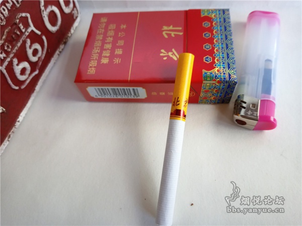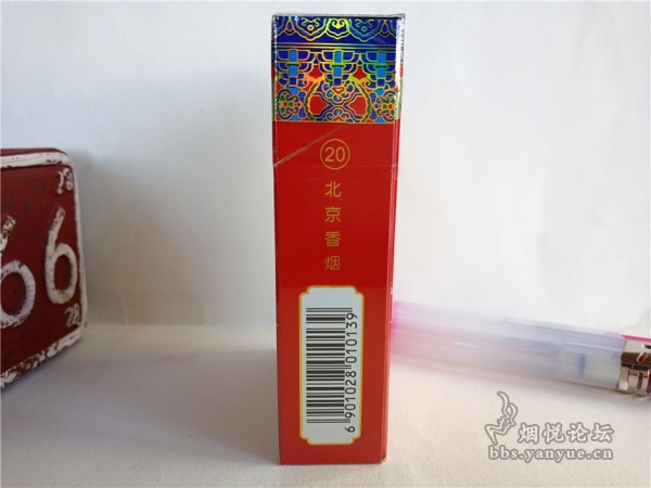 底部是以大红色为底,正中间有金色的北京二字和上海烟草出品,北京卷烟厂制造等的字样。