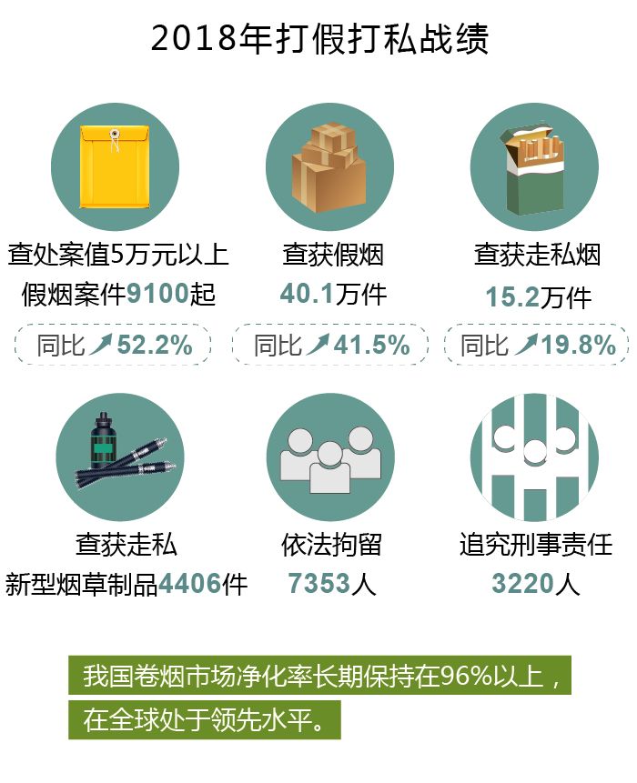 持续严厉打击非法烟草贸易,维护良好市场秩序。加强与公安、海关、海警等执法部门的协作配合,在广东、福建、河南等重点地区联合开展卷烟打假打私专项整治行动,重拳出击摧毁了一批涉烟、涉恶、涉黑犯罪团伙,开创了卷烟打假的新局面。加大对走私新型烟草制品打击力度,加强行政执法与刑事司法衔接,严厉惩治涉烟违法犯罪行为等措施,市场秩序得到有效维护。