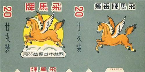 “飞马”(上世纪50年代出品) 抗日战争时期,新四军参谋长张云逸派人入股位于淮南抗日根据地的淮南群众烟草股份有限公司。1943年3月,淮南群众烟草股份有限公司更名为新群烟草公司,开始生产卷烟。 卷烟被命名为“飞马”牌,取天马行空之意。烟标早期图案为带翅膀的飞马。此后,“飞马”牌卷烟在根据地一炮打响。 张云逸并不满足,他想让“飞马”飞到敌占区去。可是由于敌占区封锁严密,根据地的产品难于出关。张云逸便想了个“偷梁换柱”的办法:从上海精印了大批“大英牌”卷烟空壳,在里面装上“飞马”卷烟运出去。于是,“飞马”卷烟就这样走出了根据地,在敌占区热销。敌占区的群众管这种烟叫“四爷的烟”。新四军以此筹集了大量资金换购药品、钢材等根据地急需物品。 1949年,国营中华烟草公司以“解放区名烟”对其进行推广,风靡上海市场。烟标后来改为腾空跃起的枣红骏马。