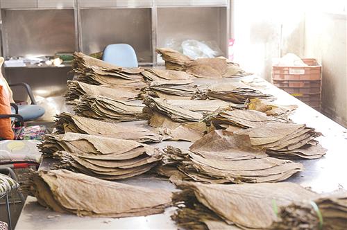 操作人员在制备机制雪茄茄衣。 孙承栋摄