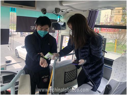 连日以来,制丝车间将思想和行动全部统一到上级的决策部署上,一手紧抓疫情防控,一手紧抓复工复产,严格贯彻落实各级组织关于企业复工后的相关要求。在上班之前,制丝车间便对每一位复工返岗员工的身体状况反复进行核查,通过“健康上报”和“湖北健康码”实行每日跟踪。同时,为了更加全面保护员工的身体健康,在车间入口又设置了一道防线,由网格小组长将分好的口罩、消毒抹布分发到每一位员工手中,进行本岗位的二次消毒,确保车间生产现场安全、有序。