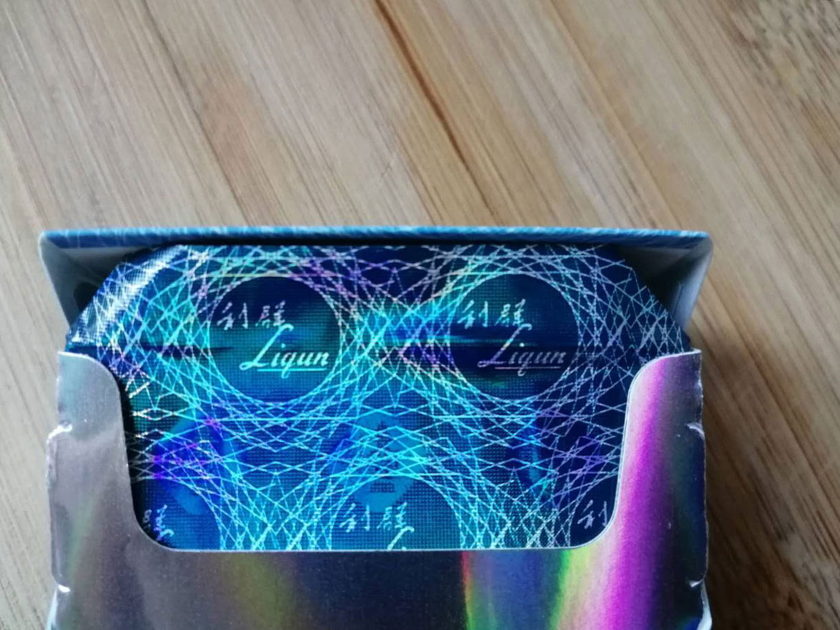 光华闪烁的内衬锡纸图案,与烟盒正反面设计样式相似。