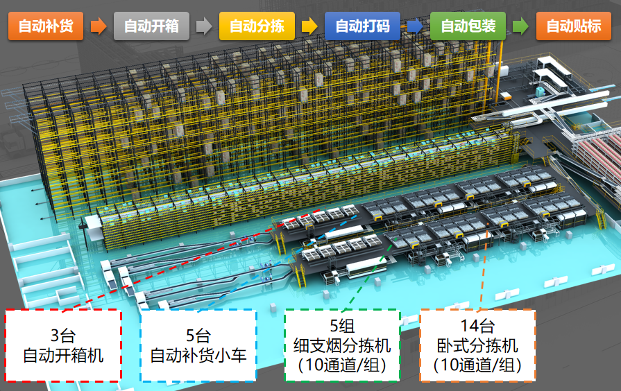 调研发现,细支卷烟占异型卷烟总销量70%以上,实现细支烟和标准烟共线分拣、合单包装的全流程自动化作业,对提高整体物流效率意义重大。