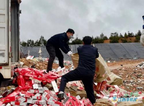 上犹集中销毁一批假冒伪劣商品 含5000条香烟