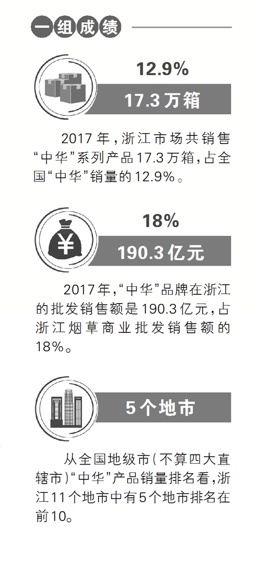 今年1~10月,在浙江市场,“中华”(全开式)销量超过3200箱,“中华”(金中支)超过500箱,“中华”(双中支)超过1700箱。
