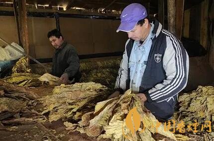接下来是第二道工序,把叶片取下来后分类,将其堆成一米高左右,覆上麻布利用叶片中残存的水份引发初次发酵。这道工序目的是使烟叶的颜色更为一致,但关键是要在35-40天内把温度控制在35度以下。这2到3个月里所有工艺最大的作用在于将茄衣的含油量和色泽控制在理想的范围内。