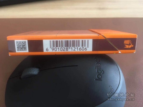 烟盒橙色,视觉感官非常靓丽,这个包装设计我给高分,由于内置两小盒两排设计,烟盒尺寸较普通烟盒略宽,烟支长89mm。