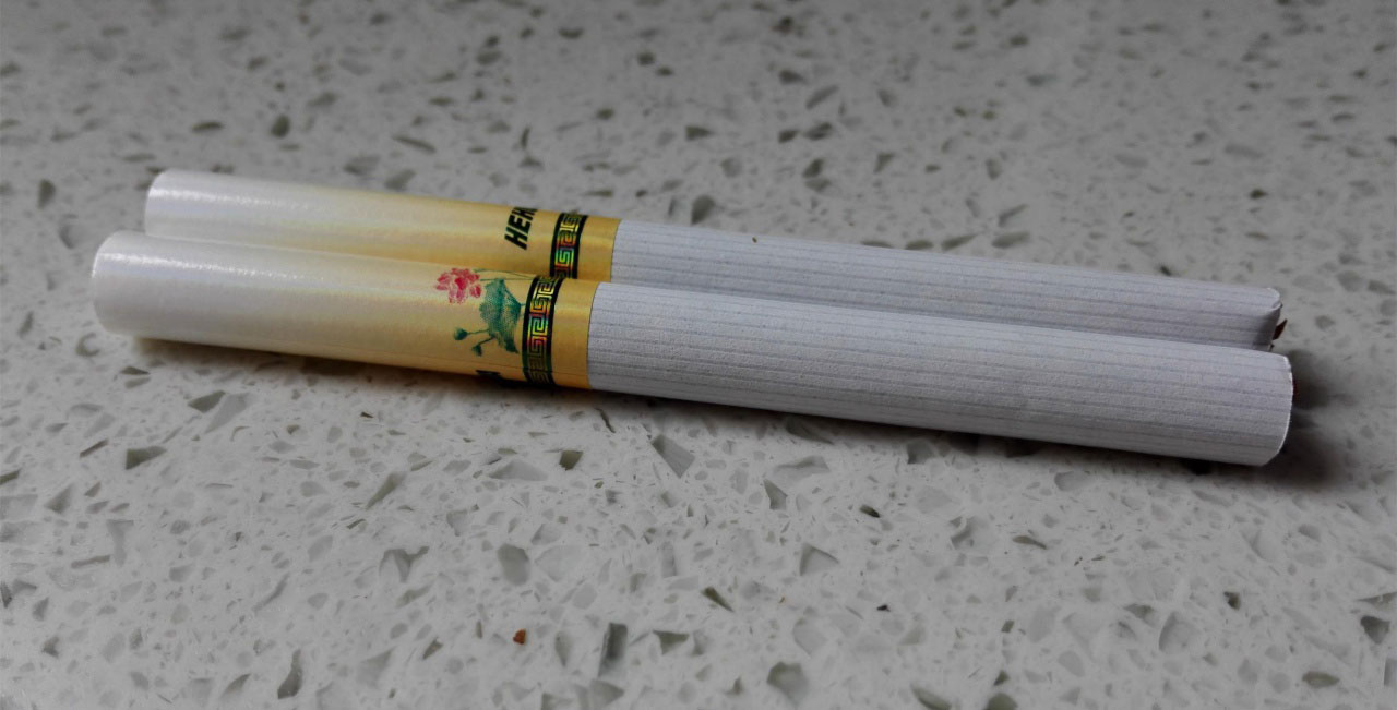 经过开盒后4天的放置,在撰写本篇文章时来抽,明显地感受到了卷纸呈较为干硬的现象。这也正常,毕竟是开盒后放置的。而现在点燃吸食过程中,之前所感受到的烟气稀薄阻滞症状,却有所缓解。我想,这应该与烟丝略显干硬的原因有关,即使过滤嘴中的活性炭和凹槽纸依旧存在。