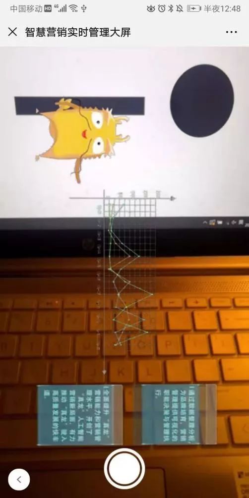打开微信「扫一扫」功能二维码,会出现什么?在今年现场会,真龙品牌可以说再次刷新「数智真龙」新高度。将AR识别框对准真龙烟包、智慧营销实时管理大屏或智慧新零售体验店,便可以通过「小龙人」生动了解到产品营销态势及可视化实时数据。