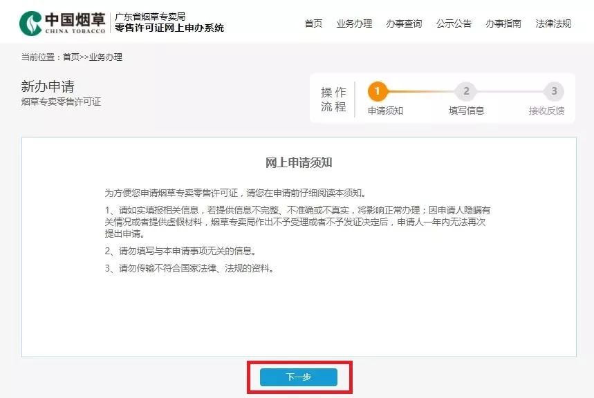 9.认真阅读“烟草专卖零售许可新办办证指南”,