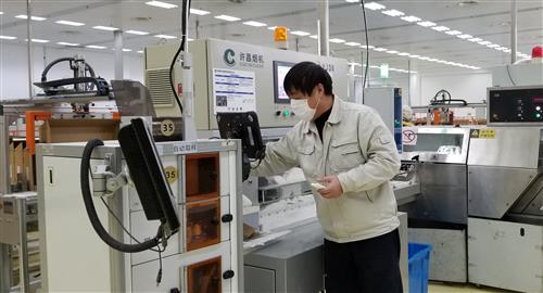 南通烟滤嘴公司生产一线员工戴着口罩专心工作。