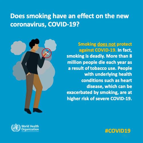 世卫组织也呼吁烟民戒烟来保持身体健康,共同对抗新冠肺炎。因为尽管人们在抽烟时谨慎小心,但仍然无法阻止拿烟的手频繁接触脸部,而且次数比普通人要多得多—-这就违反了世卫关于防御新冠肺炎的最主要的建议,那就是不要触碰你的脸!